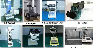 CMM, Optical Comparators, 2.5D Measurement, Roughness Testers, Performance Test Benches.